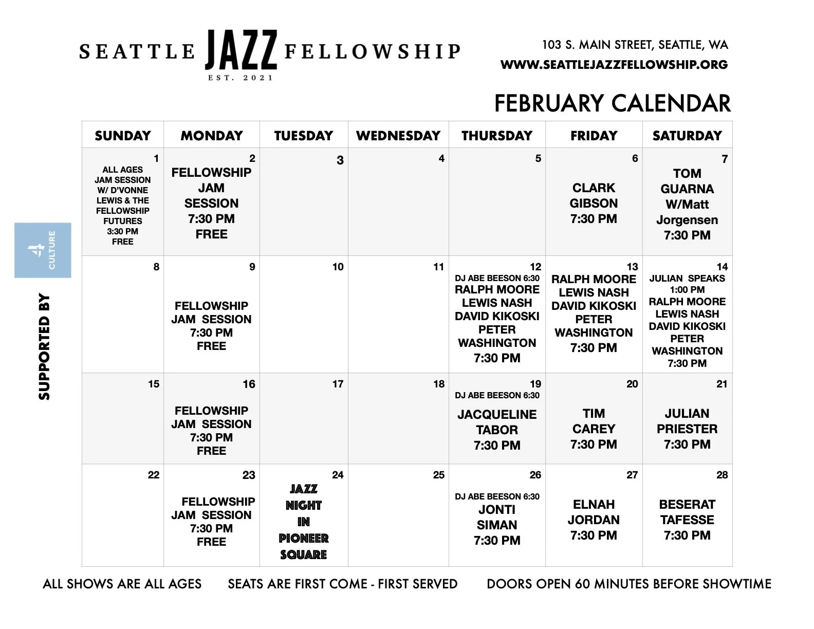 The mission of the Seattle Jazz Fellowship is to build community, provide access to the mentorship cycle, incentivize excellence and lower barriers to access for both performers and listeners of jazz, a creation of Black American culture and struggle.